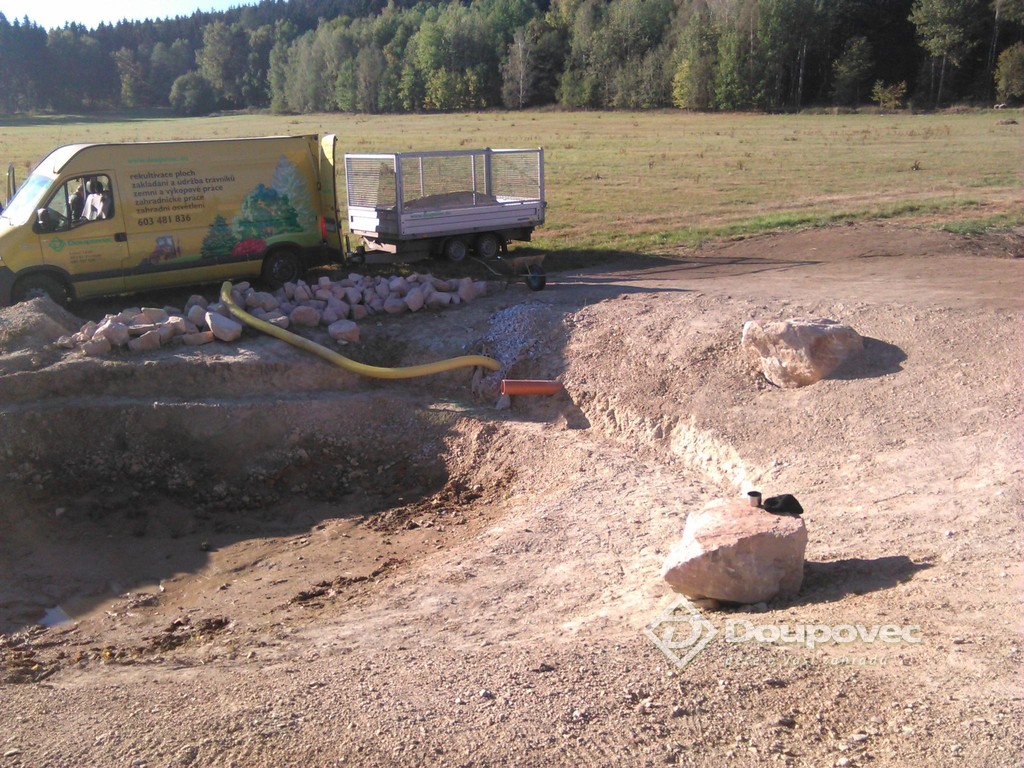 Realizace jezirka v Horní Brusnici vyčištění stávající nádrže vypískování celého jezírka natažení jezírkové fólie usazení kamenů po obvodu jezírka navežení kačírkuVíce